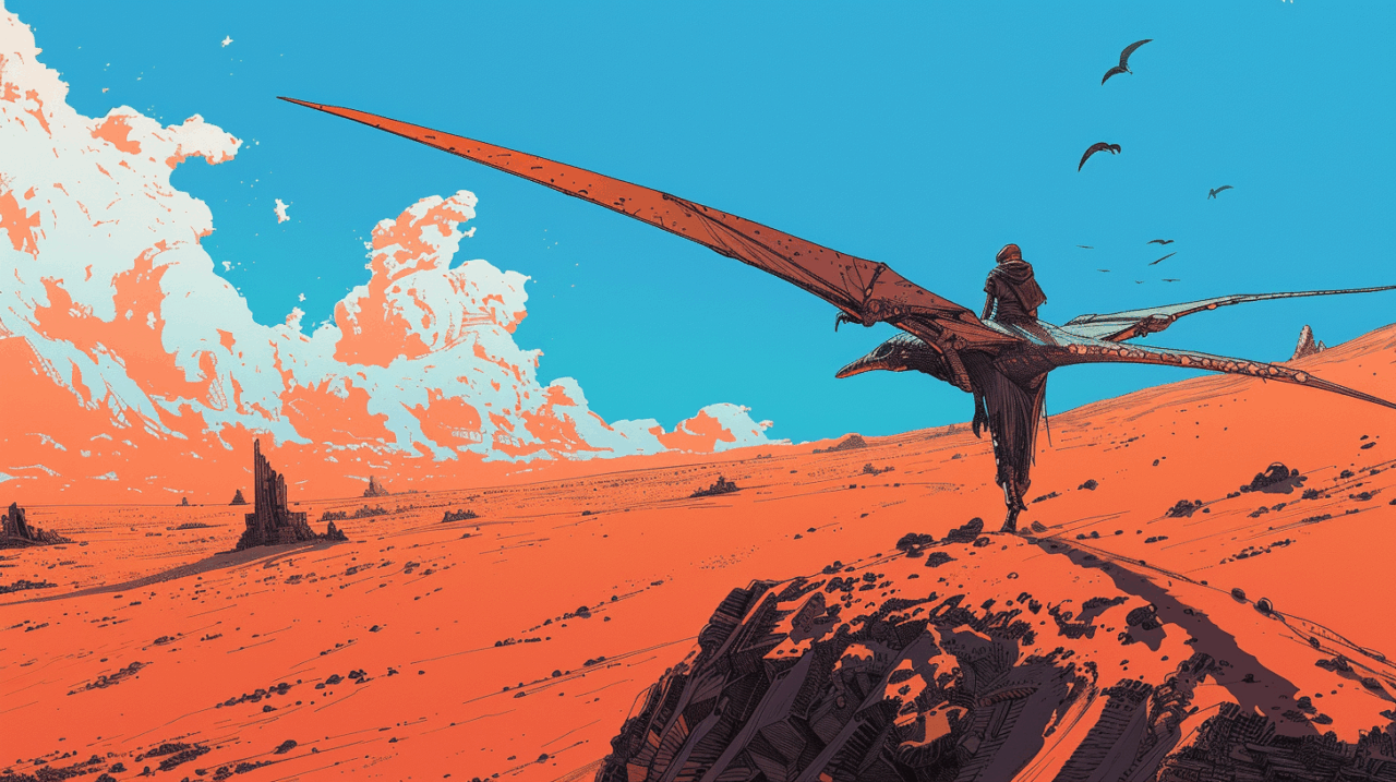 これは単なるペンネームの使い分けではありませんでした。ジローは筆でブルーベリーの写実的世界を描き、メビウスはペンで幻想の飛翔を描く。1974年、この二重性は革命として爆発します。フィリップ・ドリュイエらと共に雑誌『メタル・ユルラン』を創刊。ここで発表された翼竜に乗る戦士を描いた無言の物語『アルザック』は、宮崎駿をして「すべての漫画家が衝撃を受けた」と言わしめました。