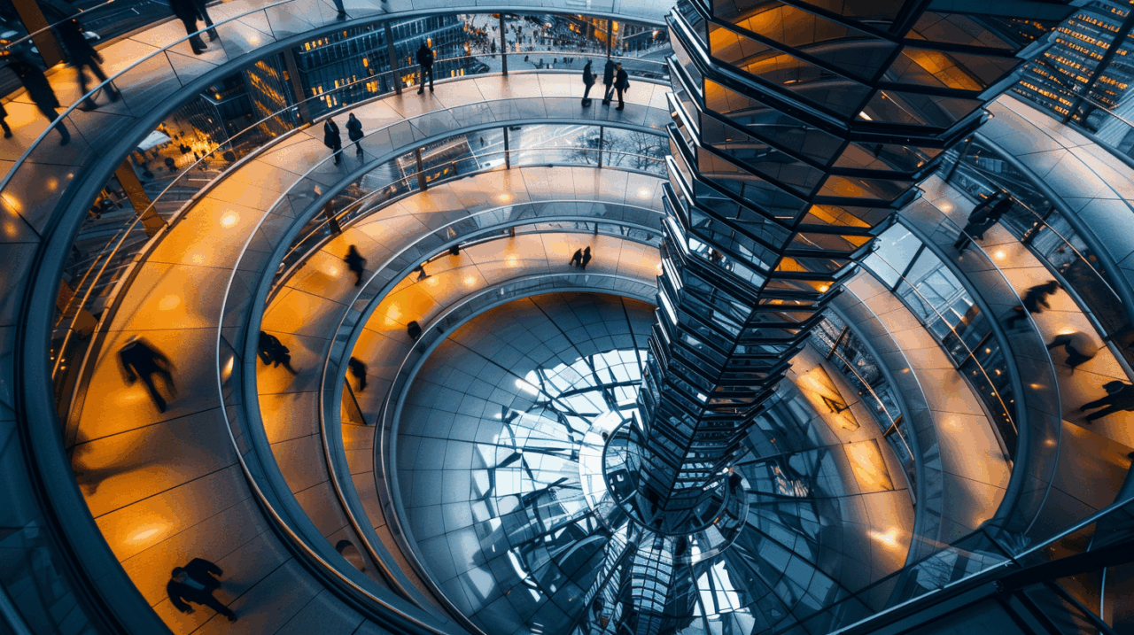 1999年、ベルリン。戦後分断の象徴だった帝国議会議事堂に、透明なガラスのドームが誕生しました。設計したのは、イギリスの建築家ノーマン・フォスター。このドームには螺旋状のスロープが設けられ、市民が自由に昇り、議場を上から見下ろすことができます。「民主主義の透明性」を建築で表現したこの作品は、ハイテク建築の新たな可能性を世界に示しました。