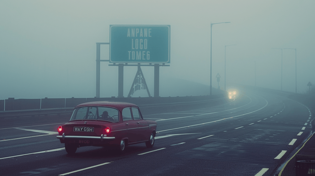 濃い霧に包まれたプレストン・バイパスで、一人のドライバーが標識を見逃し、危うく事故を起こしかけました。当時の道路標識は、まるで19世紀から時が止まったかのような古めかしいデザインで、高速で走る自動車時代にはまったく対応できていなかったのです。
