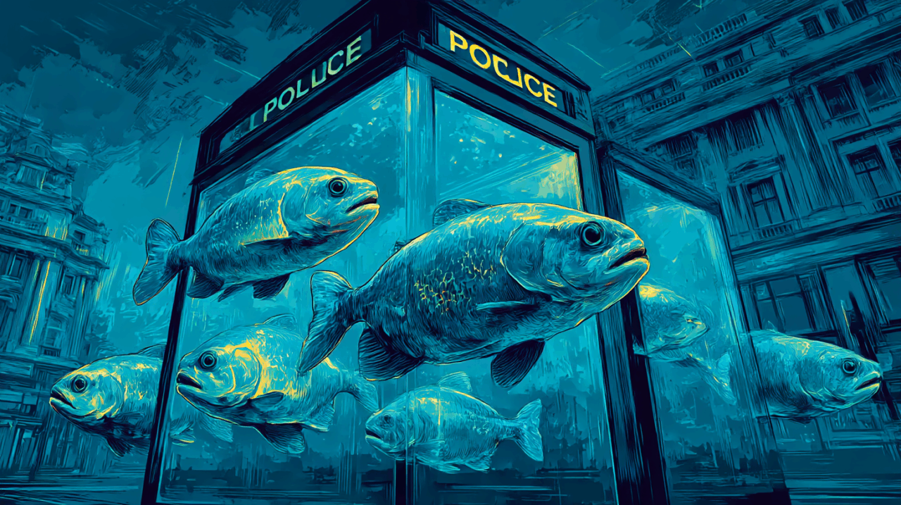 作品の概要:警察ボックスが巨大水槽に変身
