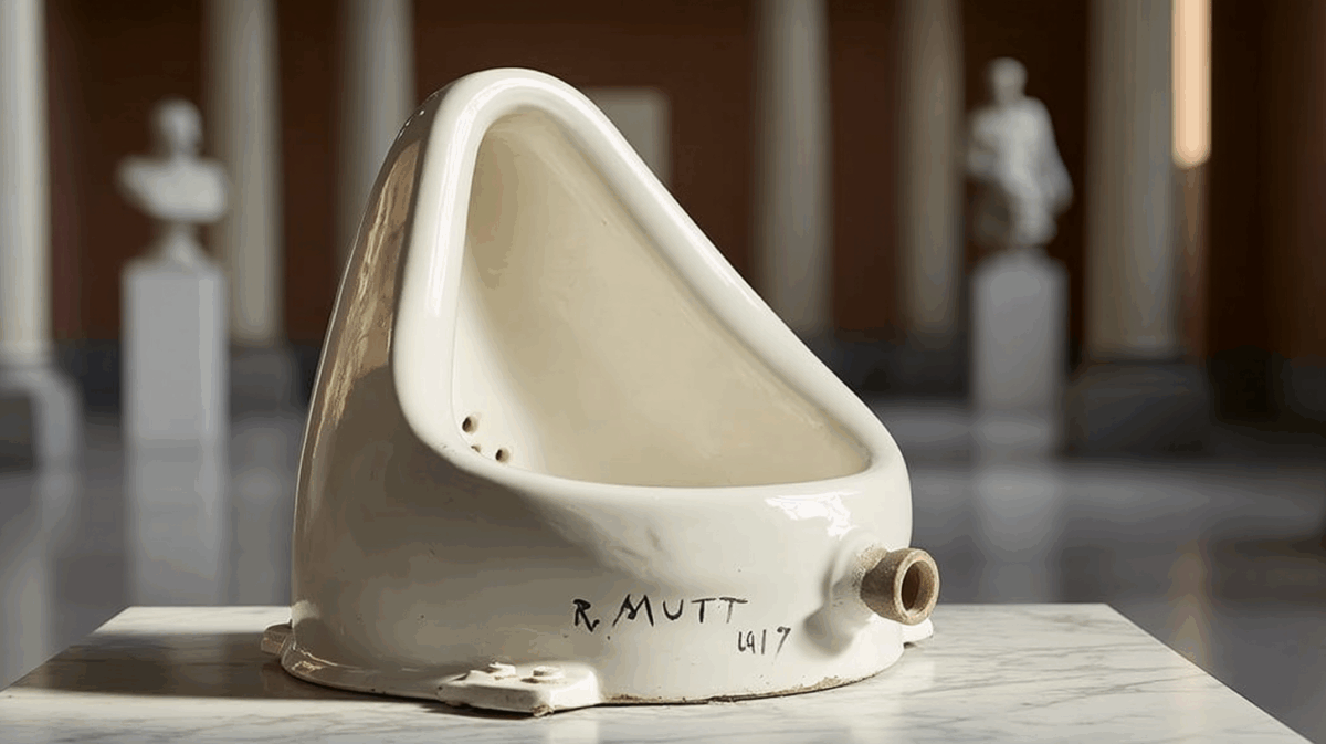 その便器は、ニューヨーク五番街にあるJ.L.モット鉄工所のショールームで購入された、ごく普通の白い磁器製の男性用小便器でした。価格はおよそ6ドル。買ったのは、フランスからやってきた30歳の男、マルセル・デュシャン。彼はそれをアトリエに持ち帰り、90度回転させて台座に載せ、黒いペンキで「R.Mutt 1917」と署名しました。タイトルは《泉》(Fountain)。そしてこれを、「出品料さえ払えば誰の作品でも展示する」と宣言していたアンデパンダン展に送りつけたのです。
