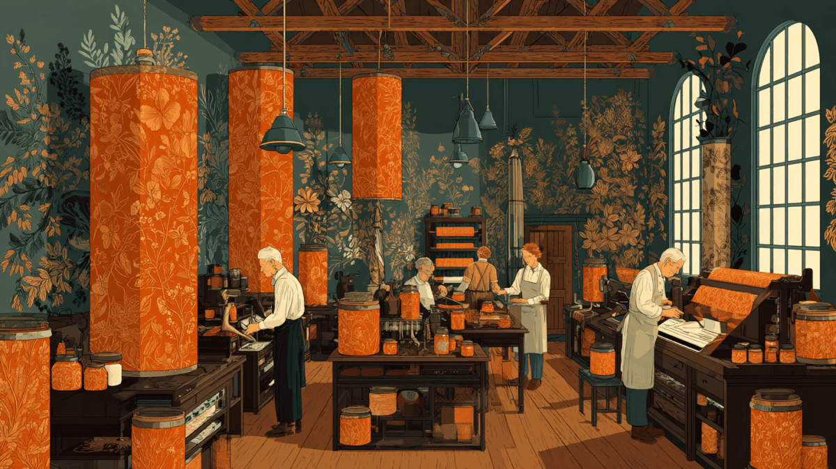 モリスが壁紙デザインに着手した1860年代、英国の壁紙市場は好景気に沸いていました。産業革命の恩恵で機械印刷が普及し、かつては贅沢品だった壁紙が一般家庭にも手の届く存在になっていたのです。