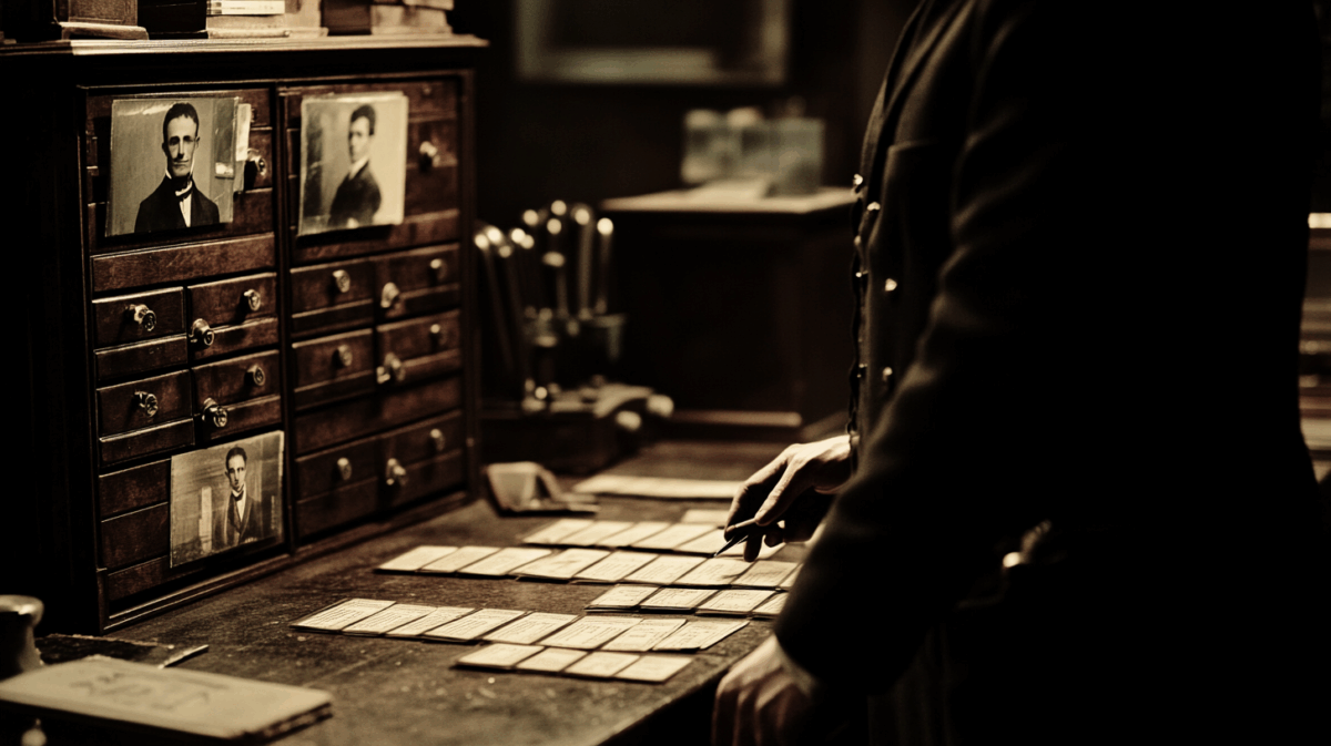 ベルティヨンの発想はシンプルでした。人間の身体には、成人後ほとんど変化しない骨格的特徴がある。それを計測し、数値に変換すれば、写真よりはるかに正確な「個人識別」が可能になる。頭蓋の長さと幅、中指の長さ、左足の長さ、前腕の長さ――5つの基本測定に加え、耳の形状、鼻の傾斜、虹彩の色、そして傷跡やタトゥーまで記録する。すべてを一枚のカードにまとめ、体系的にファイリングすれば、名前を偽っても、変装しても、「身体が語る」のです。
