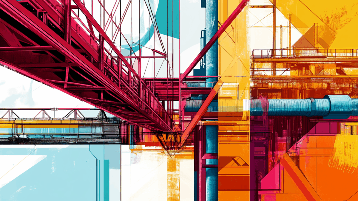 そして、エッフェル塔の精神をもっとも直接的に受け継いだ建築が、同じパリに立っています。1977年に完成したポンピドゥー・センターです。レンゾ・ピアノとリチャード・ロジャースが設計したこの美術館は、鉄骨の骨格、配管、エスカレーターといった通常は壁の中に隠される要素を、すべて建物の外側に露出させました。緑はプラミング(配管)、青は空調、黄色は電気配線、赤は避難設備やエスカレーターという色分けで、建物のすべてのシステムが「丸見え」になっています。